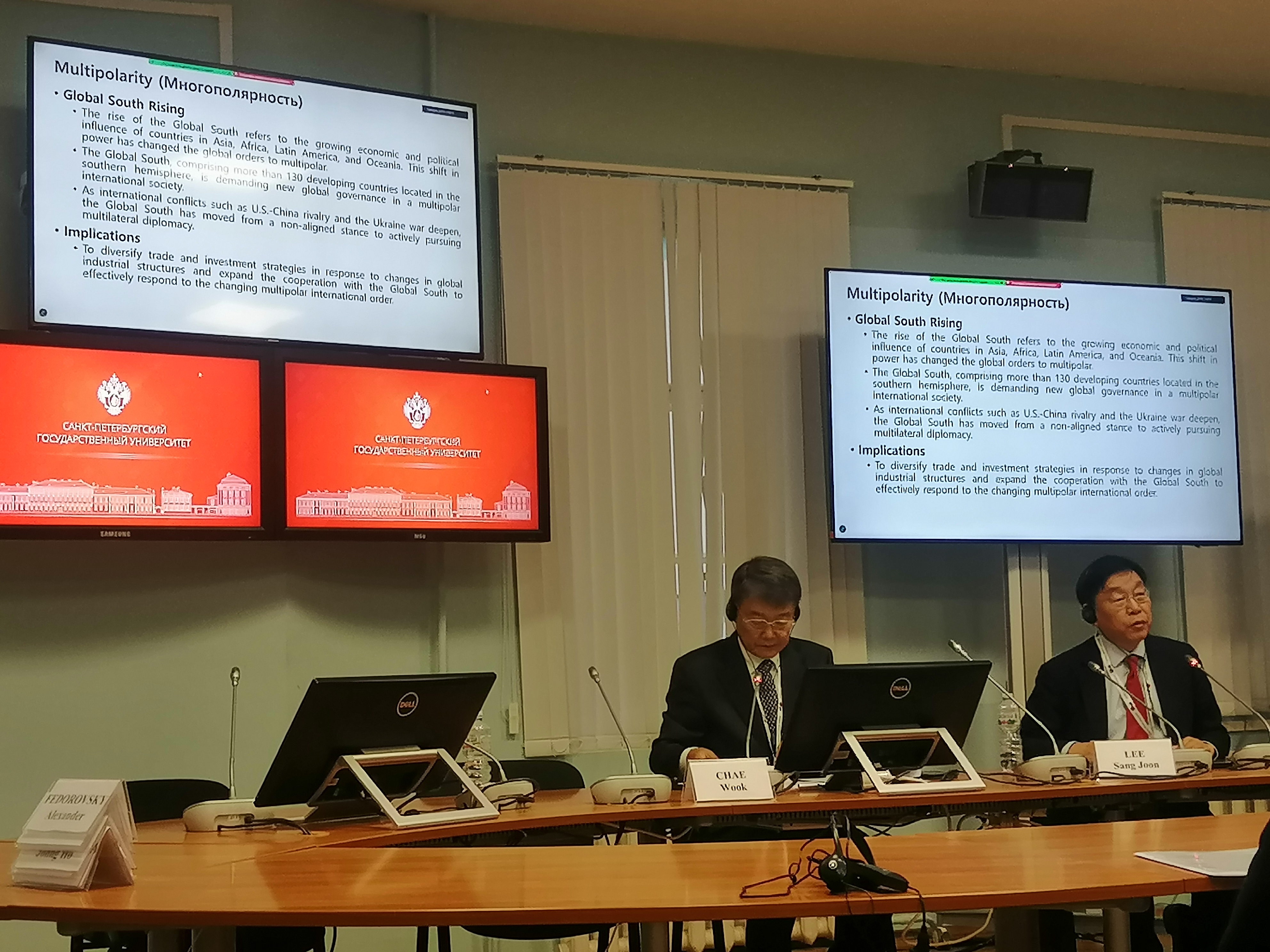 13 ноября состоялась Стратегическая конференция «Современная обстановка в Северо-Восточной Азии и отношения России и Республики Корея (к 35-летию установления дипломатических отношений между Россией и Республикой Корея)», в которой приняли участие рабочие группы «Политика и международные отношения» и «Экономика, торговля и ресурсы». В ходе конференции были проведены три рабочих сессии, на которых рассматривались вопросы изменений в международном порядке, глобальной политике, а также вопросы дипломатического и экономического сотрудничества России и Республики Корея. В работе конференции приняли участие постоянные члены рабочих групп, а также приглашённые представители дипломатических и исследовательских структур с российской и корейской стороны. В ходе обсуждения Константин Владимирович уделил внимание среднесрочным перспективам развития российско-корейских отношений в политико-дипломатической сфере.