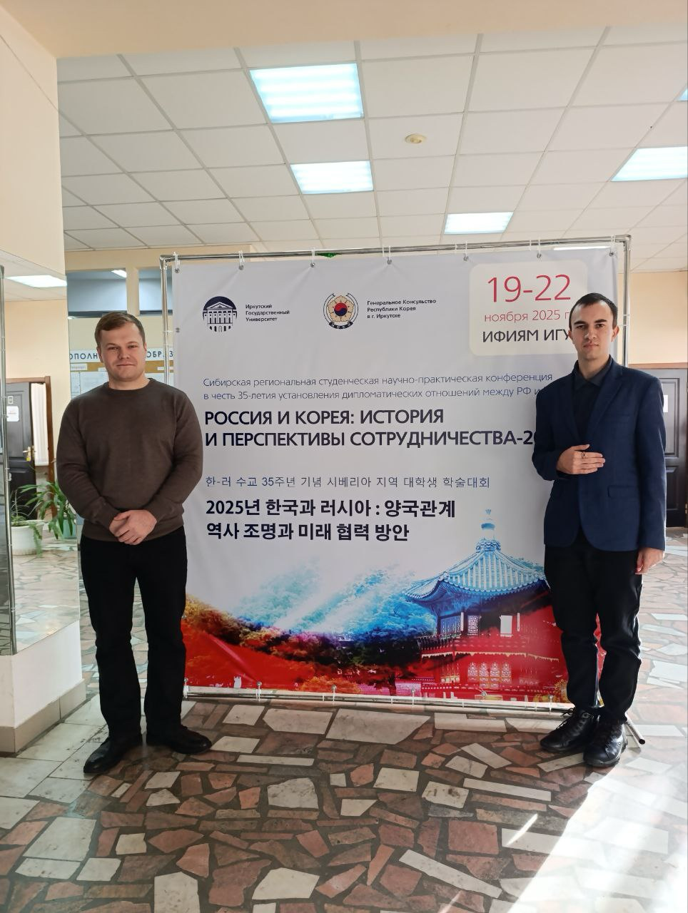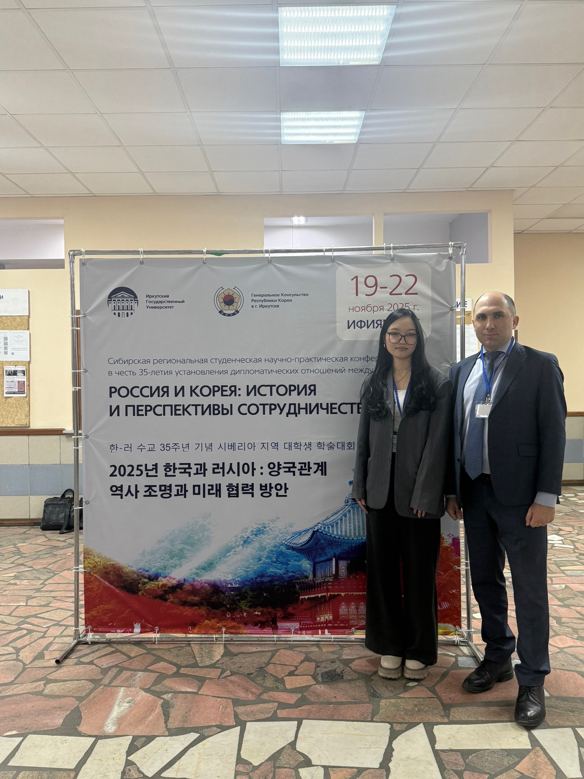 19 – 22 ноября на факультете иностранных языков Института филологии, иностранных языков и медиакоммуникации ИГУ состоялась Сибирская региональная студенческая научно-практическая конференция «Россия и Корея: история и перспективы сотрудничества-2025», которая была приурочена к 35-летию установления дипломатических отношений между Российской Федерацией и Республикой Корея. Активную поддержку в подготовке мероприятия оказало Генеральное консульство Республики Корея в Иркутске. Конференция собрала более 40 студентов и магистрантов вузов из Иркутска, Улан-Удэ, Владивостока, Горно-Алтайска, Томска, Новосибирска, Челябинска и Москвы.