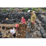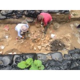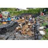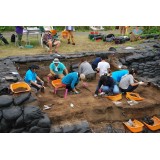 Российской группе исследователей выделили два квадратных метра в восточной части раскопа. Вскрывались 5–8 слои. Мы нашли артефакты из камня, как изделия, так и отходы литопроизводства, развал керамического сосуда, нижняя челюсть (mandibula) собаки, большое количество определимых и неопределимых костей животных, изделие из кости кита. Методика работ заключалась в поквадратной зачистке поверхности раскопа, с просеиванием грунта через специальные сита. Вся пустая порода аккуратно упаковывалась в плотные полиэтиленовые мешки, которые складывались отдельной кучей возле раскопа для временной рекультивации.